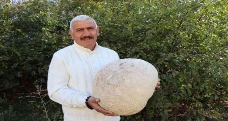 Erzurumbulten-Erzurum'un Oltu ilçesine bağlı Kemerkaya köyünde 8,885 kilogramlık mantar bulan Beycan Onat, ilk gördüğünde mantarı kestane kabağı sandığını söyledi.
