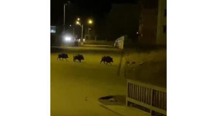 Erzurumbulten-Erzurum'un Aşkale ilçesine inen yaban domuzu sürüsü şehir merkezinde yiyecek aradı. O anlar anlar kameraya yansıdı.