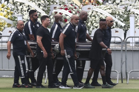 Sabahın erken saatlerinden itibaren çok sayıda taraftar Pele'nin cenazesini görmek ve efsane futbolcuya saygılarını sunmak adına stadyumun önünde uzun kuyruklar oluşturdu. Pele'nin naaşı yüzü açık şekilde Katolik inançlarına göre sergilendi. Pele'nin naaşı ziyaret için 24 saat Santos Stadyumu'nda kalacak. Cenaze için Brezilya'ya giden FIFA Başkanı Gianni Infantino, aile bireylerine taziyede bulundu.