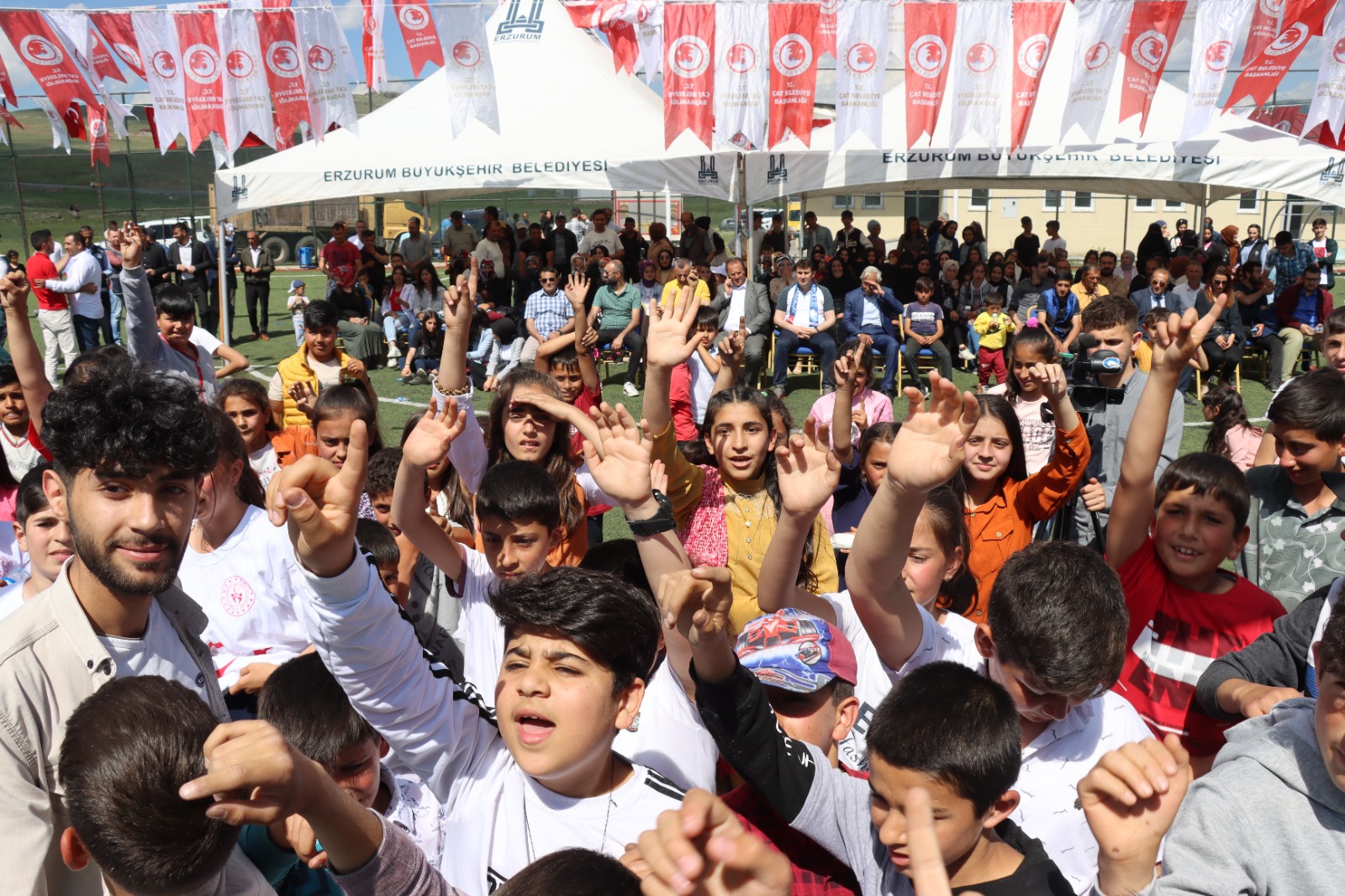 Çat Kaymakamı Muhammet Serdar Erdoğan, Jandarma Komutanı Mehmet Karabulut, Emniyet Müdürü Akın Burak Soylu, Kamu kurum ve kuruluşlarının müdürleri ile öğretmen ve öğrencilerin katıldığı gençlik şölenine, ailelerin ilgisi de büyük oldu.