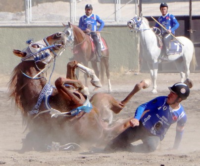 Geçirdiği kazaya rağmen tekrar atının üzerine binerek arkadaşlarının yanında yer alan Onur Korkmaz, "Bu gibi kazalar maçlarda maalesef hiç istemezsek te oluyor. Rakibime cirit atıp dönmek isterken atımın ayağı kaydı ve düştük. Alışkın olduğumuz için ikimizde yerden kalktık. Açılan eyeri takıp bir süre dinlendikten sonar yeniden sahaya döndük" diye konuştu.