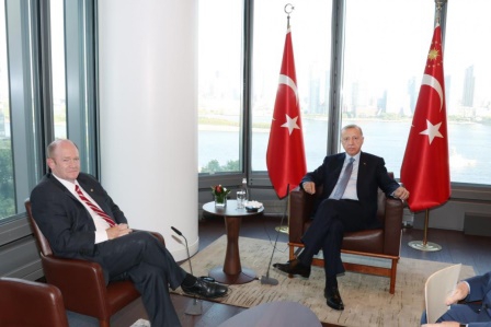 Erzurumbulten-Birleşmiş Milletler (BM) 77. Genel Kurulu nedeniyle Amerika Birleşik Devletleri’nin (ABD) New York şehrinde bulunan Cumhurbaşkanı Recep Tayyip Erdoğan, ABD’li Senatör Chris Coons’u Türkevi’nde kabul etti.