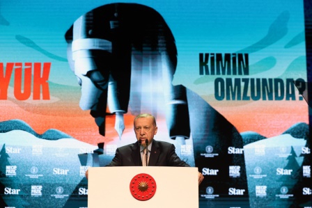 Türkiye Yüzyılı vurgusu yapan Erdoğan, “Bugün Türkiye Yüzyılı diyerek milletimizin önüne yeni bir vizyon koyarken aynı zamanda üstadın da hayalini hayata geçiriyoruz. Davasını ceplerde kaybedilmiş bir güneş olarak tarif eden üstat şayet bugün yaşasaydı herhalde müjdeler olsun size doğdu batmayan güneş. Sözünü çok daha gür bir seda ile tekrar söylerdi. Yine üstten nesillerin mücadelesi uğruna adadıkları Ayasofya'nın ibadete açılmasından bile etkilenmeyenleri gördüğünde hiç şüphesiz ahlakı olmayanın her mücadeleyi yanlış bulan tavrını hatırlatırdı. Ve bunu bize defalarca Sultanahmet Meydanı'nda hatırlatmıştır. Defalarca Cağaloğlu'nda milli Türk Talebe Birliğinin konferans salonunda hatırlatmıştır. Az önce de ifade edildiği gibi Ayasofya bir gün açılacak. Ayasofya açılacak derken hep bunu ifade etmiştik. Onun o ideali Onun hedefi gerçekleştiği gibi onu icra da bize nasip oldu. Biz kutlu davamızın ve asırlardır kesintisiz bir şekilde onun taşıyıcısı olan ecdadımızın büyüklerimizin, üstatlarımızın yolundan yürümeyi sürdüreceğiz. Üstadın zaman bendedir ve mekan bana emanettir şuuruyla özetlediği gençlerimizin özgürlük, hak, adalet, kısacası insanı insan yapan değerler konusundaki hassasiyetini gördükçe geleceğimize olan güvenimizle artıyor. Allah'a hamdolsun. Karşımızdaki tabloya baktıkça rüzgarın ne yandan estiğini aldırmaksızın bizde hamd etme makamında olduğuna inanıyoruz. Vefatının üzerinden 39 yıl geçmiş olmasına rağmen hala bizleri aynı heyecanla, aynı azimle aynı kararlılıkla bir araya getiren Necip Fazıl Kısakürek üstadımızı rahmetle yad ediyoruz” şeklinde konuştu.