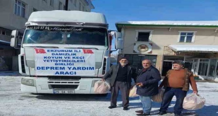 Erzurumbulten-Erzurum ili Damızlık Koyun Yetiştiricileri Birliğince deprem bölgesine destek için gıda ve giysi kolilerinin yer aldığı tırlar, yola çıktı.