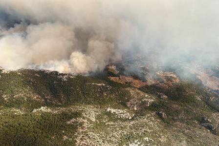 Yaklaşık 600 hektar alanda etkili olan orman yangını için sabahın ilk ışıkları ile havadan yoğun bir müdahale başladı. Havadan 12 uçak ve 27 helikopter yanan saha üzerine sürekli sorti yaparak su atmaya başladı.