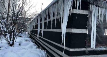 Hava sıcaklığının eksi 11'lere düştüğü Erzurum'da çatılarda dev buz sarkıtları oluştu. Boyu 2 metreyi aşan buz sarkıtları adeta buzdan duvar görüntüsü oluşturdu. Erzurum'da en düşük hava sıcaklığı sıfırın altında olmak üzere gece 11, gündüz ise 4 derece olarak ölçüldü. Soğuk havanın etkili olduğu kentte belediye ekiplerinin kar temizleme çalışması ise devam ediyor.
