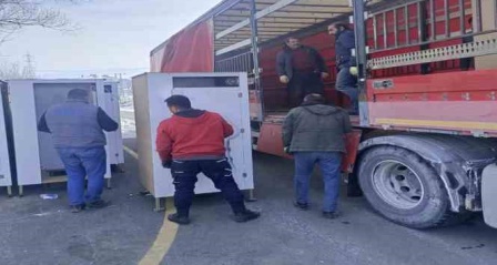 Demirciler Odası, ASKON, Şen-Pak Metal ve Kaan metal işbirliğiyle yapılan seyyar tuvaletler, TIR'lara yüklenerek deprem bölgesine gönderildi.