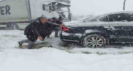 Uzun süredir Erzurum'da yağması beklenen kar, yoğun şekilde etkisini gösterdi. Yolları ve caddeleri kapatan kar, araç şoförlerini zor durumda bıraktı. Bazı araçlar kara gömülürken, bazıları ise patinaj çekmekten oldukları yerden çıkamadı. Muhammed Emin Topçu isimli vatandaş, kışlık lastiklerini vaktinde taktırmayanların şimdi taktırmak istediklerini belirtirken, sabahın erken saatlerinden itibaren yolda kalan ara