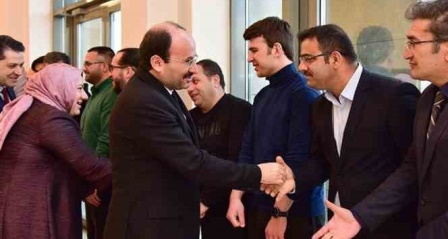 Rektör Çakmak konuşmasının ardından personel ile tek tek bayramlaşarak bir süre sohbet etti.