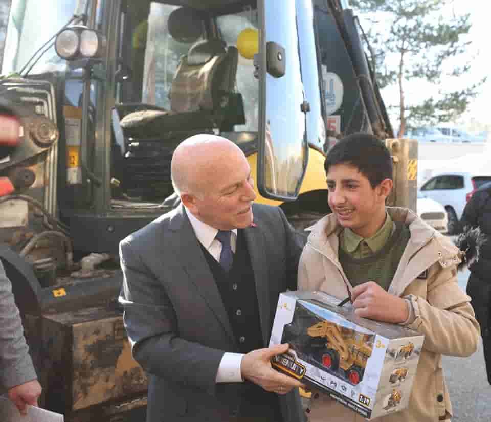 Büyükşehir Belediyesi binası önünde bulunan iş makinesine binen ve kendisine hediye edilen oyuncakla mutluluğunu ifade eden Furkan Susam’a Başkan Sekmen’de eşlik etti. Erzurum Büyükşehir Belediye Başkanı Mehmet Sekmen, yaşama sevinciyle hayata tutunan bütün engelli vatandaşların sadece bir gün değil her gün yanlarında olduklarını belirterek, “Erzurum Büyükşehir Belediyemizin Engelli Koordinasyon Merkezi’nde eğitim gören 13 yaşındaki Furkan Susam evladımız özel bir yavrumuz. Yavrumuzun bir iş makinasını kullanma hayali vardı. Bugün Furkanımızın bu hayalini gerçekleştirdik. Bizler birlikte olduğumuzda aşmayacağımız hiçbir engel yok, yeter ki kalplerimizde engel olmasın.” dedi.