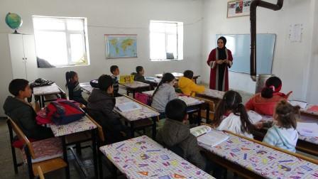 Erzurumbulten-Hakkari'nin Yüksekova ilçesinin Dilektaşı köyüne bağlı Çalımlı mezrasında ücretli öğretmenlik yapan Müjgen Karaman, bin bir zorlukla öğrencilere ders vermenin yanı sıra soba yakıp okulun temizliğini yapıyor.