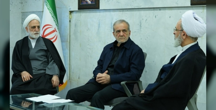 İran Dini Lideri Ayetullah Ali Hamaney’in cumartesi günü İsrail ve ABD’nin ortak saldırılarında hayatını kaybetmesinin ardından, ülkede yeni Dini Lider seçilmesine ilişkin süreç tamamlanıncaya kadar anayasal çerçevede görev yapacak olan Geçici Liderlik Konseyi’nin toplantısına ilişkin ilk fotoğraf kamuoyuyla paylaşıldı. Konseyin üç üyesi olan Cumhurbaşkanı Mesud Pezeşkiyan, Yargı Erki Başkanı Gulam Hüseyin Muhsini Ejei ve Anayasayı Koruyucular Konseyi üyesi Ali Rıza Arafi toplantıda yer aldı.