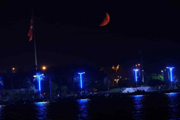Hatay'ın İskenderun ilçesinde Körfez'de batan Yarım Ay manzarası görenleri mest etti. İskenderun Körfezi'nde şehrin ışıkları ardında batan Ay'ın Türk bayrağı ile aynı karede yer alan görüntüleri kartpostallık manzaralar oluşturdu.