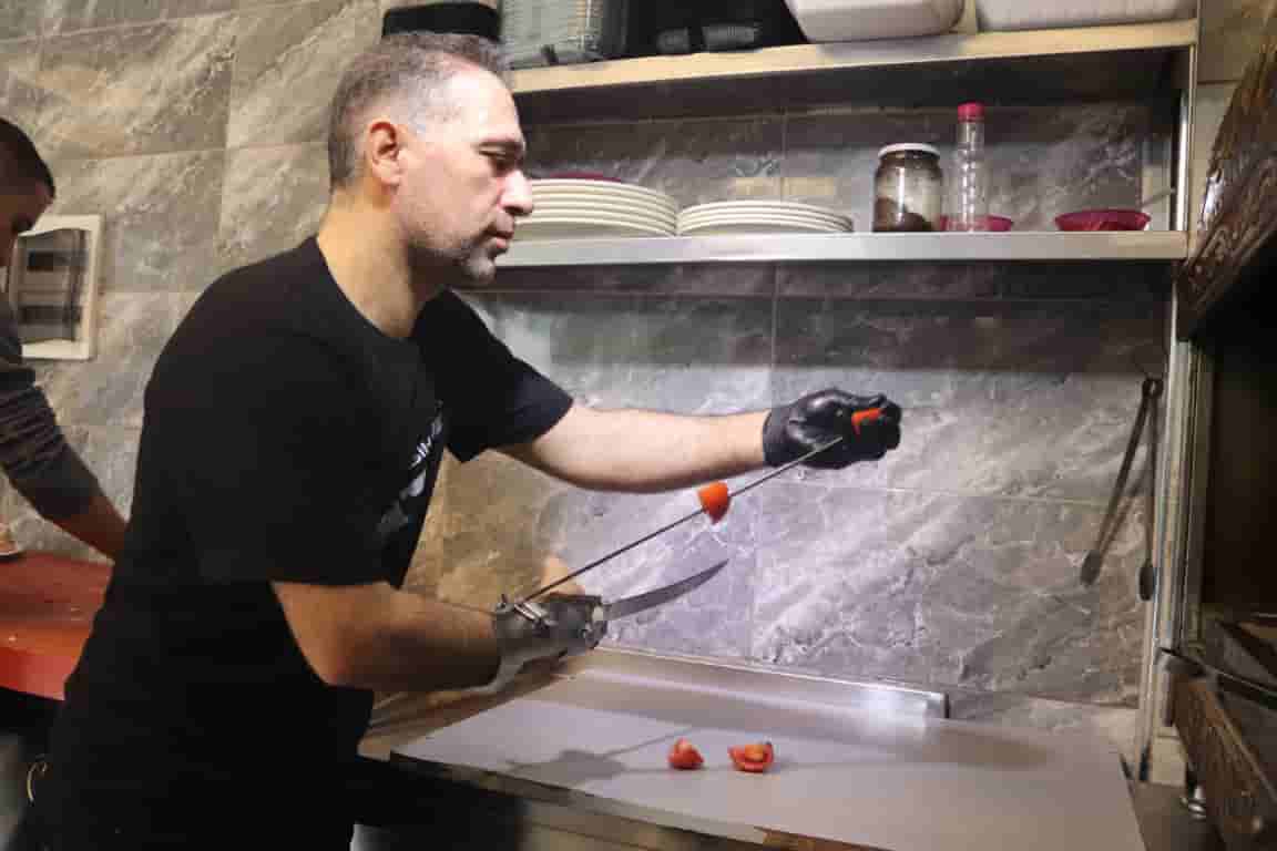 Erzurumbulten- İzmir’de, sağ elini kıyma makinesine kaptırdıktan sonra engelli olarak mesleğine devam eden 45 yaşındaki döner ustası Fesih Gündem, çok sevdiği mesleğini sürdürebilmek için engelleri aştı, kendine özel aparat geliştirdi. Geliştirdiği aparat sonrası mahallenin ‘demir elli ustası’ olarak tanınan Gündem, aparatın ucuna çeşitli bıçaklar takarak hem hayatını kolaylaştırıyor hem de döner kesip, et ve salata doğrayabiliyor.