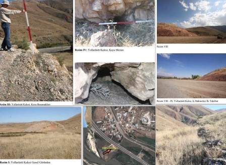 “Urartular stratejik doğal yollara, tarım için uygun topraklara ve demir, bakır, altın gibi zengin maden yataklarına sahip olan Erzincan bölgesinde hakimiyetlerini kalıcı kılmak için faaliyetlere başlamıştır. Daha önceden var olan kaleleri tamir ederek güçlendiren Urartular, bununla birlikte yeni kaleleri de inşa etmişlerdir. Tercan Ovası’nın batı kısmında Yollarüstü Kalesi de bu faaliyetlerin bir sonucu olarak inşa edilmiştir. Kalede yaptığımız ilk çalışmalarda Urartu merkezi yönetim birimlerinde karşımıza çıkan kaya mezarının varlığı tespit edilmiştir. Ancak kalenin eteklerinden geçirilen yol çalışmalarında iş makineleri tarafından kaya mezarının yok edildiğini üzüntüyle gördük. Erzincan ili, Doğu Anadolu Bölgesinin kuzeybatısında yer almaktadır. Erzincan, kuzeyde Bayburt, Gümüşhane, Giresun illeri; doğuda Erzurum, güneyde Bingöl ve Tunceli; güneybatıda Elazığ ve Malatya; batıda ise Sivas ili ile sınır komşusudur. Bulunduğu yer itibariyle Doğu Anadolu, İç Anadolu ve Karadeniz bölgelerinin birbirlerine yaklaştığı konumda yer alan Erzincan, bu konumu sayesinde kendine has coğrafi ve stratejik özelliklere sahip olmuştur. Erzincan, en eski zamanlardan günümüze hem Anadolu’nun iç kesimlerinden güney - kuzey geçiş noktasında, hem de Anadolu yarımadasından Asya’nın içlerine kadar ulaşan doğu-batı yönlü en eski yol güzergahlarının kesişme noktasında yer almaktadır."