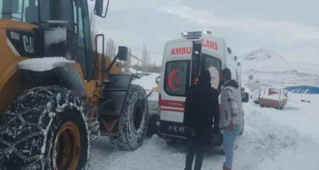 Erzurumbulten-Erzurum'un Horasan ilçesinde kalp hastası kadın, kapalı olan yol açılarak hastaneye getirildi.