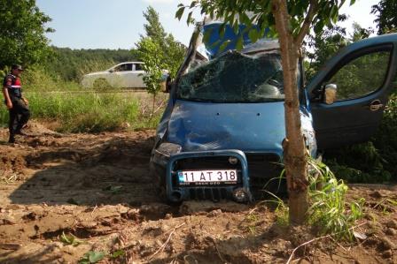 Alınan bilgilere göre, Bilecik'in Yenipazar ilçesinden Gölpazarı ilçesine seyir halindeki 11 AT 318 plakalı hafif ticari araç sürücü Bekir U. Sürüm Deresi mevkiinde geldiği esnada aracın direksiyon hâkimiyeti kaybetti. Kontrolden çıkan araç kiraz bahçesine uçarken, bir ağaca çarparak durabildi. Kazada araç içinde yolcu olarak bulunan Fatma U. (53) yaralandı. Yaralı olay yerine gelen 112 Acil Servis ekiplerince yapılan ilk müdahalenin ardından Gölpazarı İlçe Devlet Hastanesine kaldırıldı.