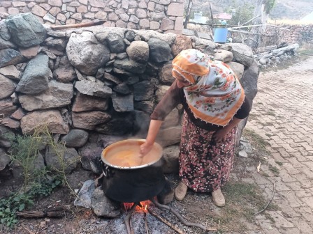 Erzurumbulten-Erzurum'un Oltu ilçesinde kadınlar kış hazırlıklarını sürdürüyor. Bir taraftan kış mevsimi boyunca tüketecekleri yağ,peynir gibi yiyecekleri üreten, sebzeleri kurutan kadınlar bir taraftan da kendilerini soğuktan koruyacak C vitamini deposu kuşburnu marmelatı yapmak için çalışıyor.