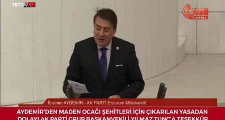 Milletvekili Aydemir yasa teklifi üzerine notlar düşüp, Maden ocağı ve yeraltı çalışanı şehitlerimiz için yaptığımız kanuni düzenlemelerdeki eşsiz katkılarından dolayı AK Parti Bartın Milletvekili Grup Başkanvekili Yılmaz Tunç'a teşekkür etti