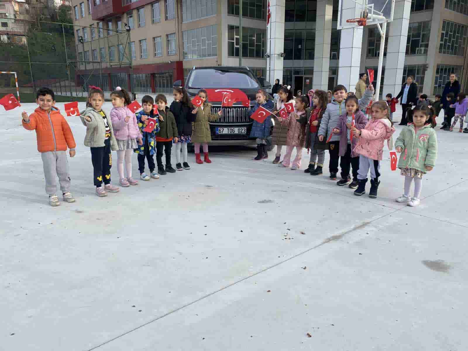 Erzurumbulten- Zonguldak’ta anasınıfı öğrencileri yerli malı haftasında Togg heyecanı yaşadı. Minikler ellerindeki Türk Bayrakları ile okul bahçesinde Togg ile gezinti yaptı.