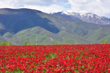 Erzurumbulten-Muş Ovası’nda açan laleler doğal güzellikleriyle kartpostallık görüntüler oluşturuyor.