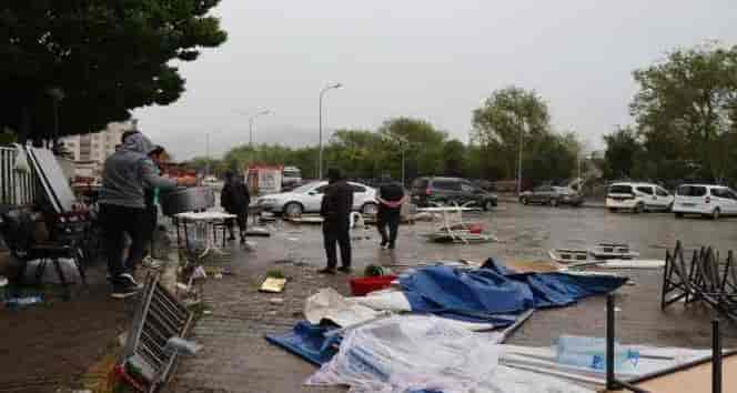 Erzurum'un Oltu ilçesinde bugün saat 14.00 sıralarında aniden çıkan şiddetli fırtına hayır çarşısı için kurulan çadırı uçurdu bazı işyerlerinin camı kırıldı. Yaklaşık 15 dakika süren şiddetli rüzgarın ardından sağanak yağmur etkili oldu. Fırtına sonrası ilçede bir saat enerji kesitlisi yaşanırken park bahçelerde cam masalar kırıldı.
