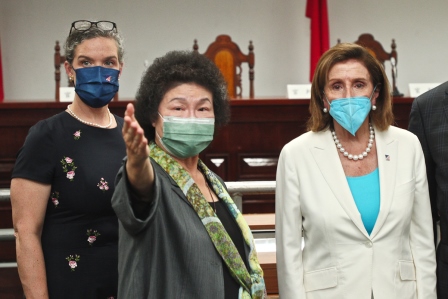 Tayvan'da bir gece konaklayan Pelosi kısa süren ziyaretinde Tayvan Lideri Tsai Yingwen ve diğer siyasetçilerle bir araya gelmişti. Tsai Yingwen tarafından Başkanlık Sarayı'nda kabul edilen Pelosi'ye Tayvan'ın en büyük devlet nişanı olan şeref madalyası verilmişti. Pelosi yaptığı açıklamada, ABD olarak Tayvan'ı desteklemeye devam edeceklerini ve onu yalnız bırakmayacaklarını söylemişti.