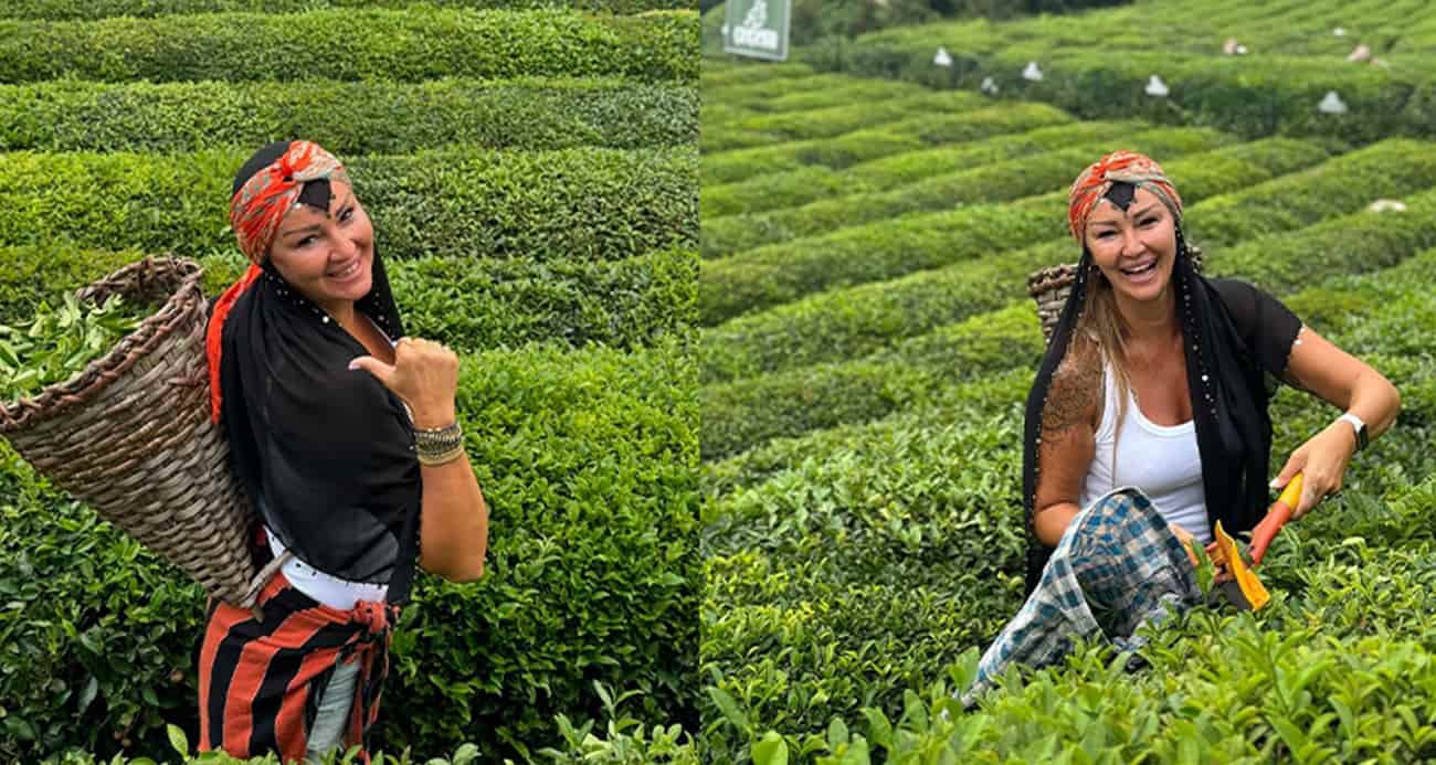 Erzurumbulten-Ünlü oyuncu, sunucu ve manken Pınar Altuğ Atacan, Rize’de çay bahçesine girerek çay topladı.