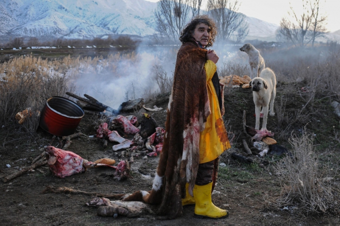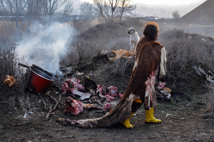 Sanatçı, şiddeti çarpıcı ve güçlü bir biçimde anlatan parçalanmış hayvan organlarını kazanda kaynattıktan sonra devirerek bu parçaları etrafa saçtı. Saçılan bu organlardan kendi paylarını almak için kazanın etrafında gezinen köpekler hem geçmişte hem de günümüzde devam eden savaşlarda böylesi bir zulmü gerçekleştiren ve bunu kendi çıkarları için kullanan insanların temsili olarak vahşi bir çehreye büründüğünü gösterdi. Sanatçı, daha önce “Mevsimler ve Biçimler" isimli çalışmasında buzla kaplanmış bir giysiyi üzerine giyerek insan unsurunun iklimsel bir etkiyle ilişkisini ortaya koyduğu performansına bir seri oluşturacak nitelikte, bu kez bir hayvan postu giyiyor. Savaşlarda yaşanan vahşetin temsili olarak giydiği post, olayla daha da bütünleşmesini sağlarken mağara dönemindeki insanın vahşi yaşamla mücadelesine de gönderme yaptı.