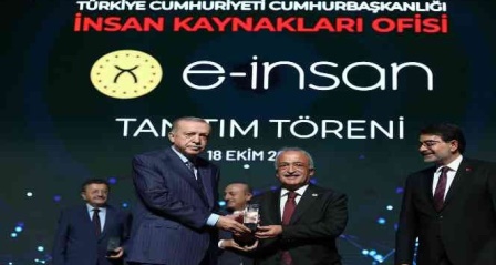 Cumhurbaşkanlığı İnsan Kaynakları Ofisi tarafından düzenlenen e-İnsan Tanıtım Lansmanı ve ardından gerçekleşen ödül töreni, gençlerin kariyer gelişimlerine ve istihdam edilebilirliklerine önemli bir katkı sunan “Yetenek Her Yerde Bölgesel Kariyer Fuarlarında” Öğrencilerin En Memnun Olduğu Kariyer Fuarı Olarak Doğu Anadolu Kariyer Fuarı DAKAF 2022'ye ev sahipliği yapan Atatürk Üniversitesini temsilen ödül alan Rektör Prof. Dr. Ömer Çomaklı'ya, ödülü Cumhurbaşkanı Recep Tayyip Erdoğan tarafından verildi.