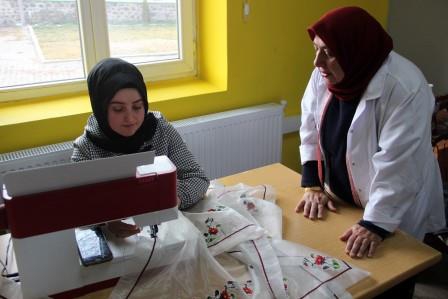 Kurs için her gün 30 kilometre yol geldiğini ifade eden Öznur Keskin “Haydari köyünden geliyorum. Bu kursa gelebilmek için dayımlarda kalıyorum. Kursla aramızda bir köy var. Bohça, runner, sofra takımı yapıyorum. Hiçbir aktivitem yoktu köyde üniversiteye hazırlanıyordum ama bu kurs sayesinde bir aktivitem oldu” şeklinde konuştu.