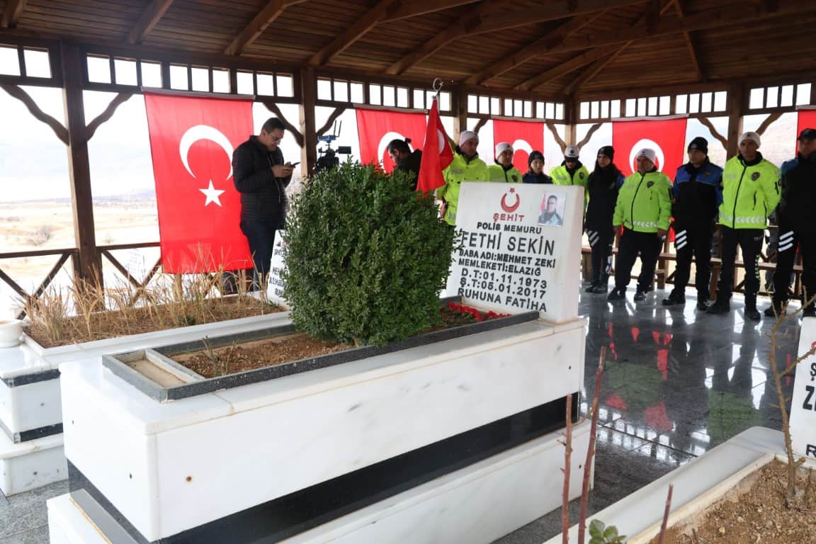 Erzurumbulten-İzmir’de 7 yıl önce adliye önünde PKK’lı teröristlerle kahramanca mücadele ederek şehit düşen polis memuru Fethi Sekin, memleketi Elazığ’da kabri başında anıldı.