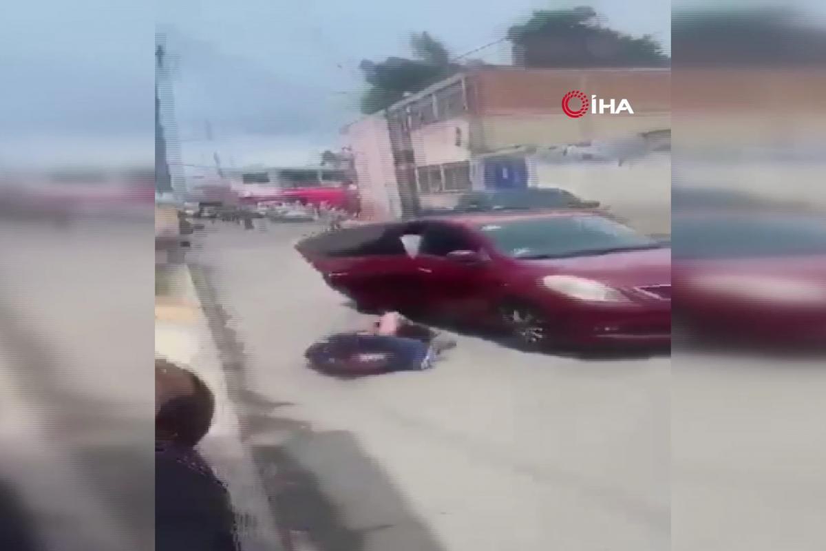 Meksika'nın Tenango del Valle kentinde alışveriş için motosikletiyle bir mağazaya gelen 22 yaşındaki genç adam, yanına araçla yaklaşan 3 kişi tarafından kaçırılmak istendi. Zanlılar tarafından dövülen ve zorla araca bindirilen adam, direnerek aracın kapısının kapatılmasına engel oldu. Araç hareket ettiği sırada mücadele etmeye devam eden genç adam, arabanın açık olan kapısından kendisini yola attı.