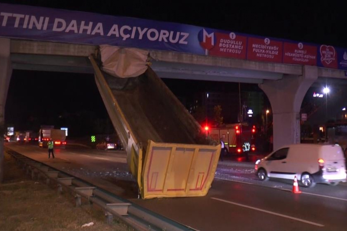 Kaza, Şile Otoyolu Çekmeköy mevkiinde saat 23.30 sıralarında meydana geldi. Edinilen bilgiye göre, 34 FK 917 plakalı Uğur Kır yönetimindeki Ford marka hafriyat kamyonunun damperi seyir halindeyken açıldı. Açılan damper otoyolda bulunan üst geçide çarptı. Damper çarpmanın etkisiyle üst geçitte asılı kalırken, tırın kupası 100 metre ileriye gitti. Kazada kimse yara almazken otoyol trafiği tek şeride düşürülerek trafik akışı sağlandı. Kazayı gören vatandaşlar ise sokağa dökülerek kazayı film izler gibi seyretti. Olay yerine gelen kurtarma aracı, tırın üst geçitte asılı kalan damperini asılı kaldığı yerden indirdi. Kaza sebebiyle Şile otoyolu Çekmeköy mevkiinde her iki istikamette de trafik oluştu.