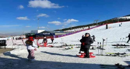 Aileler okul arası tatiline çıkan çocuklarıyla kayak keyfini Palandöken'de çıkarttı.