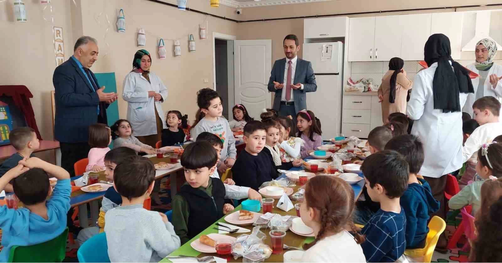 Palandöken İlçe Müftüsü Ahmet Gözcü ve Kur’an Kursu öğreticileri de tekne orucu iftarında miniklerle bir araya gelip heyecanlarına ortak oldu.