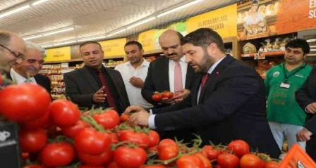 Erzurum Bölge Birliği Bölge Müdürü Bekir Parlak'la birlikte Tarım Kredi Kooperatif Marketlerinin Dadaşkent mağazasını gezen Aziziye Belediye Başkanı Muhammed Cevdet Orhan, Ilıca domatesinin süslediği sebze-meyve reyonunda incelemelerde bulundu. Tarım Kredi Kooperatif Marketlerinde kilosu 8,90 liradan satışa sunulan Ilıca domatesinin şu anda Türkiye'nin en ucuz salkım domatesi olduğunu vurgulayan Başkan Orhan, yaptığı değerlendirmede, enflasyonla mücadele vurgusu yaptı. Cumhurbaşkanı Erdoğan'ın gıda ürünlerinde indirim seferberliği başlatılması noktasında Türkiye Tarım Kredi Kooperatifleri Birliği'ne çok özel bir misyon yüklediğini hatırlatan Başkan Orhan, “Hatırlanacağı üzere bu seferberliğe bizler de Ilıca domatesimizle ortak olmuş ve Tarım Kredi Kooperatifleri Erzurum Bölge Birliği Bölge Müdürlüğü ile protokol imzalamıştık. İşte bu çerçevede Ilıca domatesimiz şu anda Türkiye'nin en ucuz salkım domatesi olarak rafları süslüyor. Vatandaşlarımız da salkım domates fiyatlarına yönelik ufak bir araştırma yaparlarsa, Ilıca domatesinin piyasanın en ucuzu olduğunu rahatlıkla görebilirler” diye konuştu.