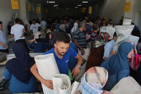 Ankara'da bir depoyu su basması sonucu halılar, Elazığ'a getirilerek üçte bir fiyatına satışa sunuldu. Kampanyayı duyan vatandaşlar ise ucuz fiyata halı alabilmek için dükkana akın etti. İş yeri önünde araç ve insan kuyrukları oluşurken, vatandaşlar adeta birbiriyle yarıştı. İzdiham yaşandığı halı dükkanda adım atacak yer kalmadı. Kapış kapış alınan halılar, araçlara konularak evlere götürüldü.