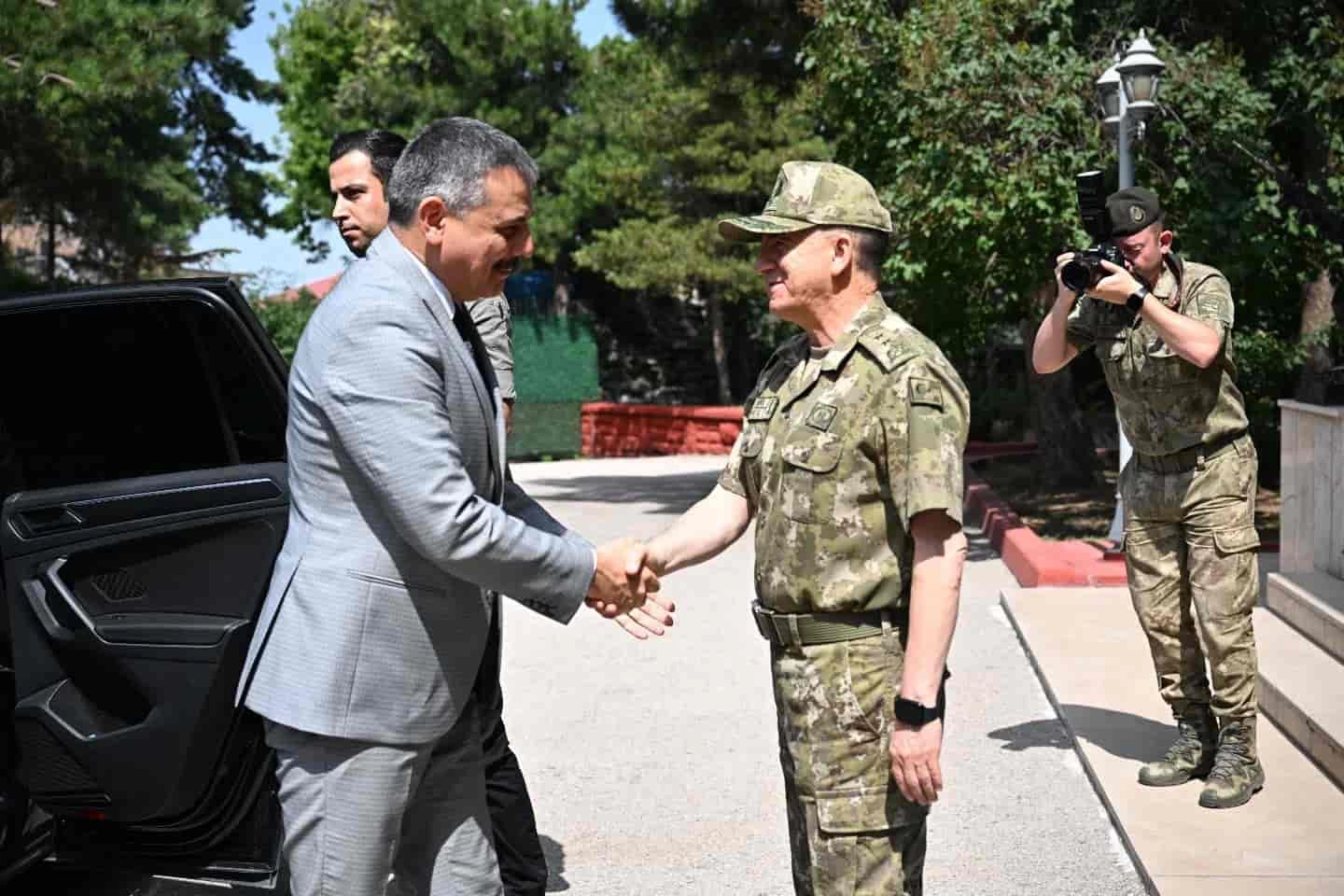Vali Mustafa Çiftçi, 5/8/2025 Tarihli ve 2025/309 Sayılı Karar’la Korgeneralliğe terfi eden 9. Kolordu Komutanı Tümgeneral Tuncay Altuğ’a ziyarette bulundu. Vali Çiftçi, 9. Kolordu Komutanı Altuğ’u yeni rütbesi vesilesiyle tebrik ederek görevinde başarılar diledi.