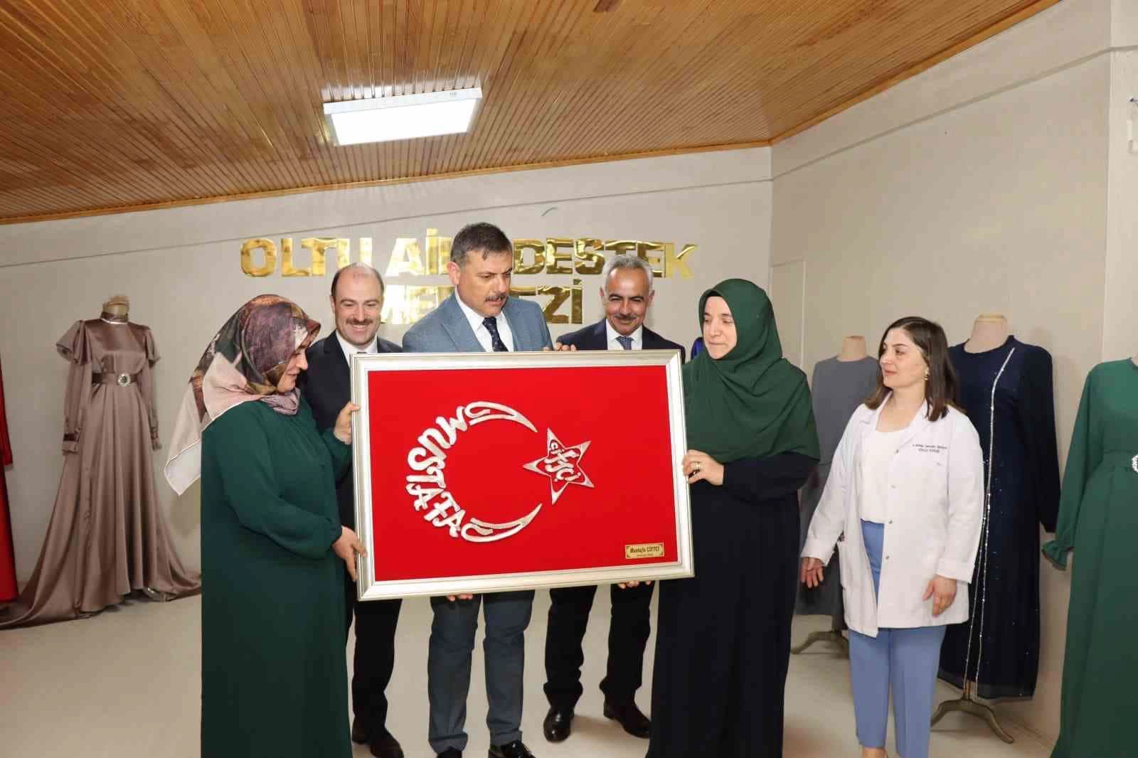 Vali Mustafa Çiftçi, daha sonra Oltu Aile Destek Eğitim Merkezi’ni ziyaret etti. Burada kursiyerlerle bir araya geldi. Kursiyerler Vali Mustafa Çiftçi’ye Türk Bayrağı hediye etti.