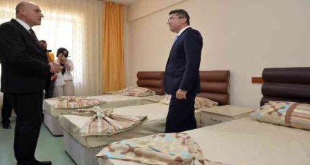 Gençlik Spor İl Müdürü Birdal Öztürk ve yurt müdürleri ile birlikte yurt binalarını gezen Vali Okay Memiş hazırlıkları yerinde inceledi.