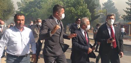 Erzurumbulten-Atatürk Üniversitesi yemekhanesindeki yangını söndürme çalışmalarını izleyen Vali Okay Memiş, basın mensuplarına kısa bir açıklamarda bulundu. Yangının yemekhanede başladığını ve rüzgarın etkisiyel kısa sürede büyüdüğünü belirten olayda can kaybı olmamasının sevindirici olduğunu söyledi. Vali Memiş "Dumanla başlayan bir yangın birden bütün bütün çatıyı kapladı. 112 ihbarından sonra 6 dakika içiresinde Erzurum Büyükşehir Belediyesi itfaiye ekipleri olaya müdahale etmeye başladı. Bununla birliktte rüzgarın da etkisiyle yangın artarak, genişleyerek devam etti. Yaklaşık bir 15-20 dakika içerisinde 22 ekiple beraber yüzlerce personelle müdahale ediyoruz. Yangın büyük oranda kontrol altına alındı diyebiliriz. Soğutma çalışmalarına da başlayacağız. Yangına müdahalenin teknikleri var. Önce doğalgazı kestik, tüpler falan vardı. Biraz kontnrollü olmak gerekir. Gördüğünüz gibi alanı emniyetimiz boşalttı. Emniyet'e ait TOMA'lar buraya geldi. Havalimanında acil müdahele için bekleyen araçları yönlendirdik. Orman müdürlüğüne ait arazözler yangına müdahale ediyor. Yangına müdahale edecek araçlar burada" diye konuştu.