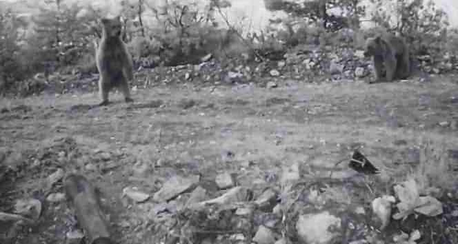 Erzurum'un Olur ilçesinde bir vatandaş, doğaya yerleştirdiği fotokapan ile yavru ayıları görüntüledi.