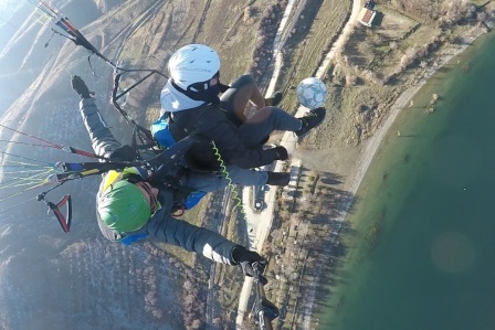 Elazığ Sportif Havacılık Kulübü'nün her hafta düzenlediği yamaç paraşütü etkinliğine katılan 32 yaşındaki özel eğitim öğretmeni Ümit Muslu, sıra dışı bir olaya imza attı. Muslu, Hazar Gölü manzarası eşliğinde 2 bin 700 rakımlı Hazarbaba Dağı'nda yamaç paraşütü yapmanın keyfine futbol topu ile renk ve aksiyon kattı. Hava sıcaklığının -5 derece olduğu anda uçuş yapan Muslu, yerden 350 metre yüksekte top sektirdi. O anlar aksiyon kamerası ile görüntülendi.